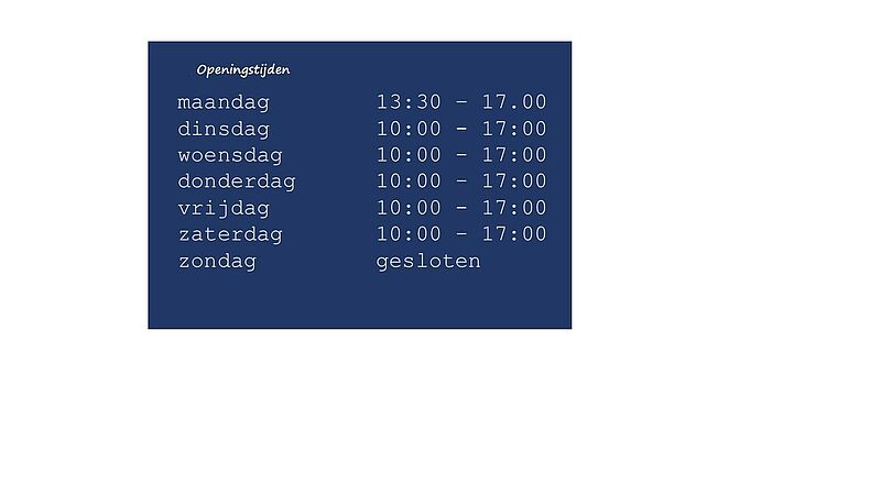 Extra opening: elke maandagmiddag van 13.30 - 17.00